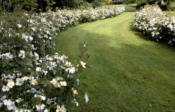 In the heart of the Vendée countryside, the Parc de l'Auneau, classed a remarkable garden, there sits a viewpoint that dominates the Vallée du Petit Lait beside a proud Tuscan house. The place gives visitors an amazing sensation of calm... There are few flowers here except the heritage roses, but there is a variety of incredible trees, such as European beech, American oak, Portugal laurel, sycamore and blue cedar.