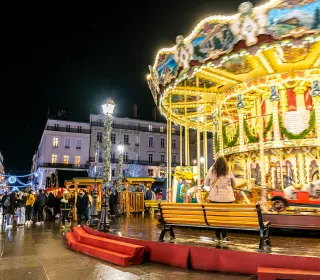 In Angers, the very central place du Ralliement gets all dolled up for the holiday period. Opposite the Grand Théâtre, ablaze with the illuminations, the chalets unveil their treasures, which include wooden toys, nougat, glass art, pottery, shawls and more. Visitors certainly won't grumble at the idea of stopping between stalls to enjoy a mulled wine or even cider! As for the kids, they'll love the big merry-go-round, as well as the shows and concerts offered on site.