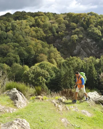For this final day, we head for Saulges, Petite Cité de Caractère®, for a trail circuit in the midst of unspoilt nature. Lovers of bucolic landscapes will opt for the blue "Au milieu coule une rivière" trail (14.4 km), while history buffs can try their hand at the red "R'Préhistorique" trail (9.2 km), which winds around the Saulges caves.